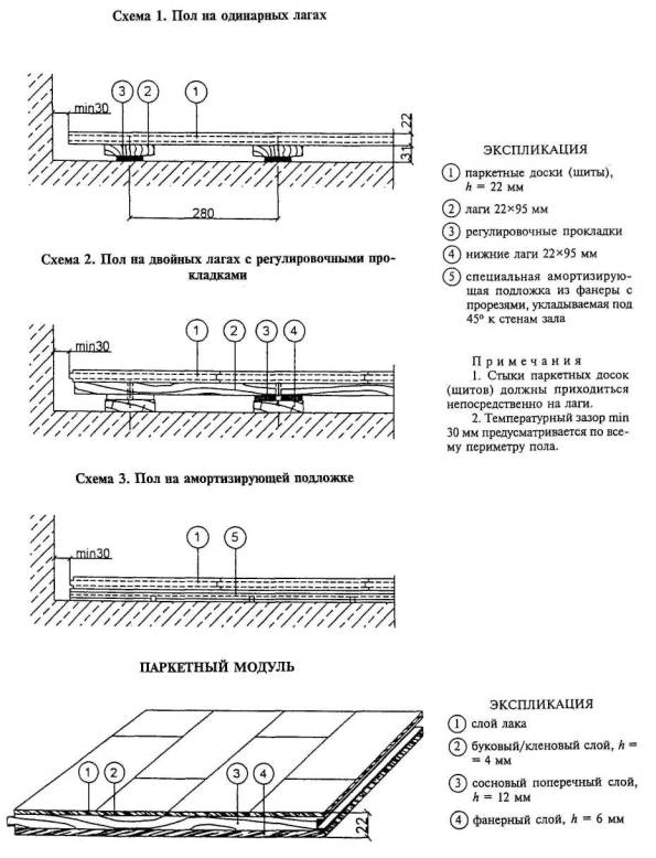 КОНСТРУКЦИИ ПАРКЕТНО-ЩИТОВЫХ ПОЛОВ ПО ЛАГАМ |