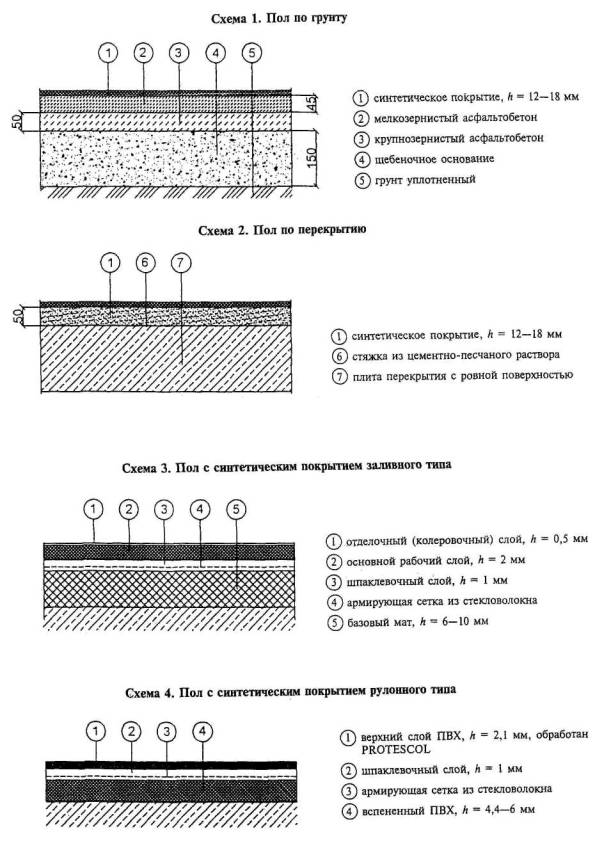 КОНСТРУКЦИИ ПОЛОВ С СИНТЕТИЧЕСКИМ ПОКРЫТИЕМ ПО СПЛОШНОЙ ПОДГОТОВКЕ |