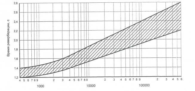 Объем зала, м3 Рисунок 9.1. – График времени реверберации