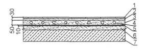 1 - керамическая плитка; 2 - цементная стяжка; 3 - слой песка; 4 - обогревающие трубы; 5 - гидроизоляция; 6 - цементная стяжка; 7 - плита перекрытия