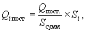 где Qi пост - индивидуальная доля постоянных расходов для отдельной квартиры, Гкал; Sсумм - сумма площадей всех квартир в расчетной единице с учетом коэффициентов излишков; Si - площадь данной отдельной квартиры с учетом коэффициента излишков. Чем меньше доля Qпост, тем больший стимул для экономии теплоты создается для индивидуальных потребителей. Долю постоянных расходов в последующие расчетные периоды можно изменить по согласованию между управляющей организацией, жильцами и расчетно-сервисной организацией. 9.5. Переменные расходы - это доля расхода теплоты в расчетной единице, приходящаяся непосредственно на теплоотдачу отопительных приборов в квартирах (см. п. 3.11) Qперем. = Q2 - Qпост. Переменные расходы могут составлять от 50 % до 100 % величины общего потребления Q2 в зависимости от принятой для данной расчетной единицы доли постоянных расходов Qпост. Переменные расходы распределяются между индивидуальными потребителями пропорционально суммам единиц потребления теплоты в каждой квартире: