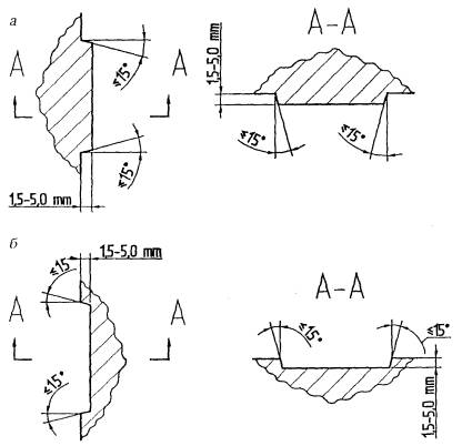 Стеклянные панели должны иметь маркировку, содержащую следующую информацию: название и торговую марку фирмы-поставщика; тип стекла; толщину (например, 8/8/0,76). 5.9.2.14. Шахта платформы подъемной может оборудоваться дверями (люками) для технического обслуживания и аварийными дверями, которые должны закрываться на замок и открываться наружу шахты. Закрытие этих дверей должно контролироваться электрическим устройством. Открытие дверей должно производиться специальным ключом. Изнутри шахты открытие дверей должно производиться вручную без применения специального ключа и приспособлений. 5.9.3. Платформа 5.9.3.1. Грузонесущее устройство платформ подъемных с вертикальным перемещением с огражденной шахтой должно выполняться в виде платформы, имеющей ограждение, входной проем (входные проемы), пол и в оговоренных случаях потолочное перекрытие. 5.9.3.2. Вертикальное ограждение платформы должно быть сплошным, в котором должен быть предусмотрен входной проем или 2 входных проема при проходном исполнении и должно отвечать требованиям пп. 5.9.1.9, 5.9.1.10. 5.9.3.3. Внутренняя поверхность ограждения должна быть гладкой и без острых кромок. Допускаются выступы и впадины высотой не более 5 мм. Кромки выступов и впадин высотой более 1,5 мм должны быть скошены под углом 15°, как показано на рис. 1. 5.9.3.4. Внутренняя сторона двери платформы должна быть гладкой и в закрытом состоянии должна находиться в плоскости ограждения. Допускается в зоне дверного проема образование впадин и выступов относительно ограждения платформы при закрытой двери шахты при условиях, оговоренных в п. 5.9.3.3. 5.9.3.5. Высота ограждения платформы должна быть не менее: 2,0 м - при установке в жилых, общественных и промышленных зданиях; 1,1 м - при установке в частных жилых зданиях, принадлежащих одной семье. 5.9.3.6. Потолочное перекрытие, которое устанавливается при высоте ограждения не менее 2000 мм, может быть стационарным, несущим нагрузку, или съемным. Стационарное потолочное перекрытие должно нести нагрузку не менее 250 кг/м2 и передавать ее на каркас или ограждение платформ. Съемное потолочное перекрытие должно быть самонесущим, и действие на него внешних нагрузок не допускается. Сверху такого потолочного перекрытия должна быть прикреплена табличка, информирующая обслуживающий персонал о недопустимости вставать на это перекрытие. 5.9.3.7. Входные проемы на платформу должны закрываться горизонтально-раздвижными дверями, отвечающими требованиям пп. 5.9.2.3 - 5.9.2.12. 5.9.3.8. Для обеспечения возможности перемещения пользователя в положении сидя платформа может быть оборудована откидным сиденьем. Сиденье должно размещаться у стены ограждения и при освобождении автоматически возвращаться в исходное положение. 5.9.3.9. На пути движения платформы в шахте должен сохраняться гарантированный зазор между ограждением и элементами платформы (учитывая выступающие части). Величина зазора не должна превышать 20 мм. 5.10. Платформы подъемные с вертикальным перемещением без ограждения шахты 5.10.1. Грузонесущее устройство платформ подъемных с вертикальным перемещением должно выполняться в виде платформы, огражденной со всех сторон и имеющей входной проем (входные проемы) и пол. 5.10.2. Любые поверхности или предметы, отстоящие от внутренней стороны ограждения платформы на расстоянии 400 мм и менее, должны быть гладкими и без ос