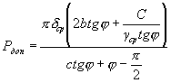 где b - половина ширины подошвы насыпи; tgj - коэффициент внутреннего трения; С - сцепление грунта; gср - средний объемный вес грунта. х) Маслов Н.Н. Основы инженерной геологии и механики грунтов. М., Автотрансиздат, 1961. При приближенных расчетах можно принимать предельную высоту насыпи в зависимости от показателей сопротивляемости грунта сдвигу в соответствии с данными табл. 2. Коэффициент устойчивости, определяемый отношением допускаемой нагрузки к фактической от веса насыпи (Рфакт = gh, где g - объемный вес грунта насыпи; h - высота насыпи), должна быть не менее единицы. В противном случае необходимо принять меры по повышению устойчивости основания. Такими мерами могут быть уширение подошвы насыпи за счет уменьшения крутизны ее откосов, устройство пригрузочных призм, Таблица 2