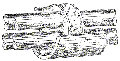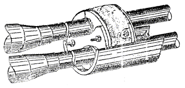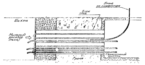 КОНСТРУКТОРСКО-ТЕХНОЛОГИЧЕСКОЕ ВРЕМЕННЫЕ РЕКОМЕНДАЦИИ Москва - 1982 Временные рекомендации по герметизации вводов кабелей предприятий связи разработаны ССКТБ во исполнение Указания Министерства связи СССР от 10.03.78 г. № 4395. В Рекомендациях излагаются способы герметизации вводов кабелей, а также организация и технология выполнения этих работ. Рекомендации предназначены для работников строительно-монтажных и эксплуатационных организаций Министерства связи СССР, осуществляющих герметизацию вводов кабелей предприятий связи и их приемку. Временные рекомендации согласованы с ГНТУ, ГУТС, ГУМТС, ГСС, ЛОНИИС и ЦНИЛОТ. Разработчик - Каневский Ю.Г. 1. ОБЩИЕ ПОЛОЖЕНИЯ1.1. Герметизация вводов кабелем предприятий связи включает работы по устройству герметичного блока асбестоцементных труб, проложенных от стационарного колодца и герметизации каналов вводного блока. В том случае, когда ввод кабелей в шахту осуществляется из коллектора, в стенном проеме, соединяющем шахту и коллектор, производится устройство герметичного блока, состоящего из отрезков асбестоцементных труб, длина которых определяется толщиной стены. 1.2. Устройство герметичного блока асбестоцементных труб для ввода кабелей в помещения предприятий связи производится посредством послойного бетонирования рядов труб бетонной смесью марки 200, составленной на основе расширяющегося (безусадочного) цемента, песка и гравия. 1.3. Герметизация каналов вводного блока производится с помощью герметизирующих устройств. 1.4. Герметизирующее устройство для свободного канала (ГУСК) состоит из арматуры (черт. АХП2.158.00 СБ), представляющей собой два диска, изготовленные из листовой стали толщиной 4 мм, стягивающиеся по центру шпилькой М6×100 ГОСТ 7798-70 и гайкой М6 ГОСТ 5915-70 и мастики герметизирующей нетвердеющей строительной ГОСТ 14791-79, которой заполняют пространство между дисками перед установкой устройства в канале (рис. 1). Свойства герметизирующей мастики приведены в приложении 2. 1.5. Герметизирующие устройства для каналов, занятых кабелями (ГУЗК), состоят из арматуры (черт. АХП2.158.001СБ - АХП2.158.006СБ), представляющий собой два диска из того же материала, что и ГУСК, имеющие отверстия для пропуска кабелей, двух или трех шпилек с гайками и шайбами, и мастики герметизирующей нетвердеющей, которой заполняют пространство между дисками и кабелями перед установкой устройства в канале. Рис. 1. Герметизирующее устройство для свободного канала (ГУСК) 1.6. Герметизация канала достигается тем, что после установки герметизирующего устройства в канале и завинчивания гаек на шпильках, герметизирующая пластичная мастика, сжимаемая дисками, уплотняется, заполняя при этом объем между дисками и внутренней поверхностью асбестоцементной трубы, а также между кабелями и кромками отверстий и надежно адгезирует с поверхностями. 1.7. Арматура герметизирующих устройств для каналов, занятых кабелями, может быть неразрезной (АГУЗК) для одного (рис. 2), двух, трех и четырех (рис. 3) кабелей и разрезной (АГУЗКр) для одного (рис. 4) и двух (рис. 5) кабелей. Неразрезные герметизирующие устройства применяются для герметизации каналов при строительстве объекта в том случае, когда дополнительная прокладка кабелей в каналах не предусматривается. Разрезные герметизирующие устройства устанавливаются в каналах, в которых в дальнейше