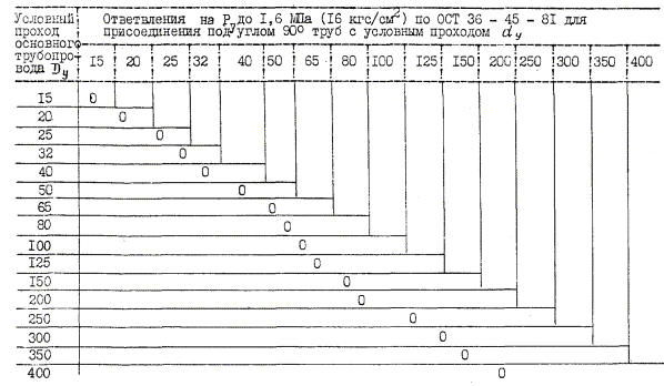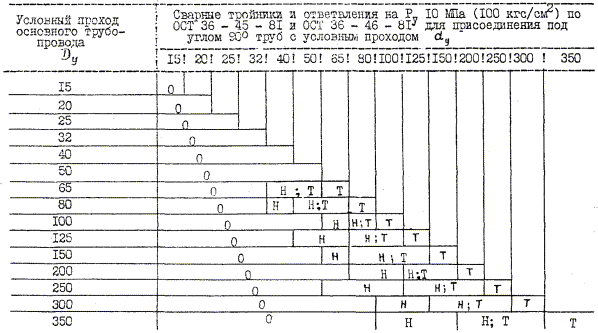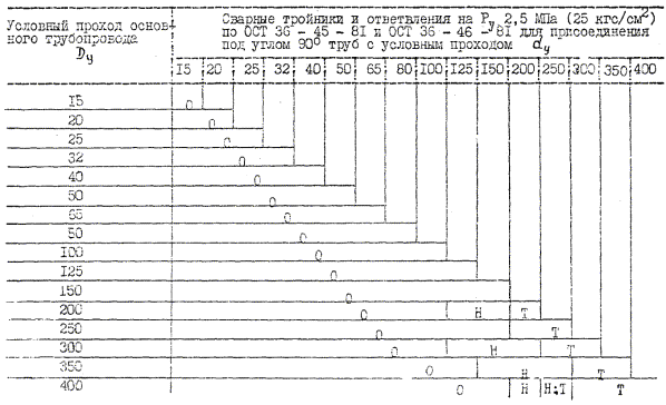 Таблица 4 Типы и условные проходы тройниковых соединений на Ру 2,5 МПа Размеры в мм