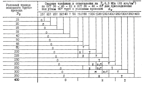 Таблица 6 Типы и условные проходы тройниковых соединений на Ру 6,3 МПа Размеры в мм