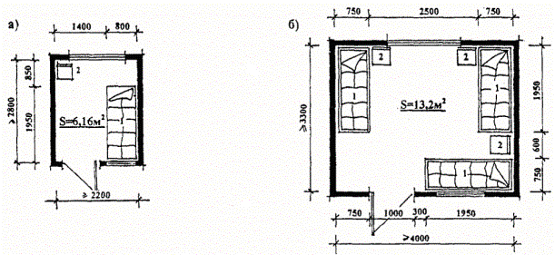 Помещения медицинского изолятора. 5.109. Помещения медицинского изолятора предусматриваются в СПУО-2. Рекомендуемые состав и площади помещений изолятора приведены в таблице 5.8. 5.111. Помещения изолятора соединяются с остальными помещениями СПУО через тамбур-шлюз, в котором следует размещать умывальник и вешалку для смены халатов. 5.112. В состав помещений изолятора следует включать изоляционные палаты на 1 и 3 чел. Количество палат в каждом конкретном случае определяется заданием на проектирование в соответствии с п. 5.110 настоящих Рекомендаций. 5.113. Между изоляционными палатами и коридором следует предусматривать глухие (не открывающиеся) окна для наблюдения за воспитанниками. 5.114. Для организации питания воспитанников, находящихся в изоляторе, в состав его помещений следует включать буфетную с моечной посуды. Оборудование буфетной рассчитано на электроподогрев готовой пищи. 5.115. Вход в санитарные узлы в изоляторе следует проектировать из коридора для возможного наблюдения за воспитанниками. Таблица 5.8. Рекомендуемый состав и площади помещений медицинского изолятора.
