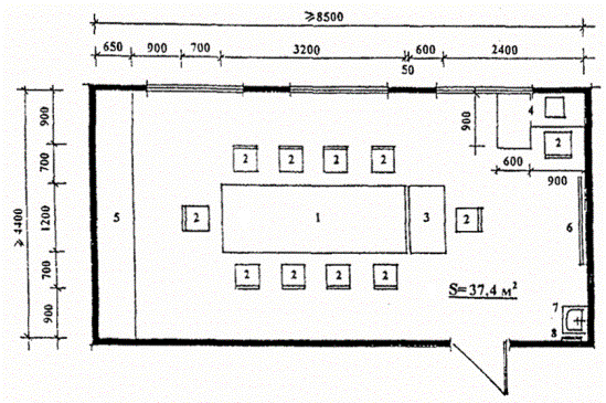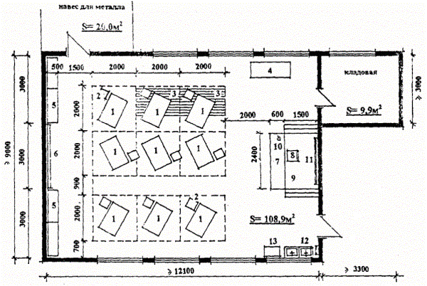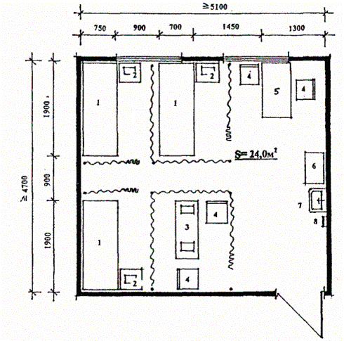ПРИЛОЖЕНИЯЭКСПЛИКАЦИЯ ОБОРУДОВАНИЯ 1. Кровать 2. Стул Рис. П.1. Спальные комнаты на 1 (а) и на 3 места (б). ЭКСПЛИКАЦИЯ ОБОРУДОВАНИЯ 1. Стол ученический 2. Стул 3. Стол воспитателя Рис. П.2. Комната приготовления уроков. ЭКСПЛИКАЦИЯ ОБОРУДОВАНИЯ 1. Стол ученический 2. Стул 3. Стол воспитателя 4. Кресло 5. Журнальный стол 6. Телевизор с видеомагнитофоном 7. Классная доска 8. Умывальник с вешалкой для полотенца Рис. П.3. Комната тихого отдыха. ЭКСПЛИКАЦИЯ ОБОРУДОВАНИЯ 1. Фрезерный (токарный станок) 2. Тумбочки 3. Деревянный настил-решетка 4. Слесарный верстак 5. Металлические шкафы для инструментов и рабочей одежды 6. Световое табло по технике безопасности 7. Стол мастера 8. Стул 9. Подиум 10. Пульт управления световым табло 11. Классная доска 12. Умывальник с вешалкой для полотенца 13. Контейнер для отходов Рис. П.4. Мастерская фрезерная (токарная). ЭКСПЛИКАЦИЯ ОБОРУДОВАНИЯ 1. Верстак с выдвижным ящиком 2. Экран 3. Фрезерный станок 4. Тумбочка 5. Деревянный настил-решетка 6. Сверлильный станок вертикальный 7. Сверлильный станок 8. Заточный станок 9. Разметочная плита 10. Гибочный станок 11. Стол мастера 12. Стул 13. Классная доска 14. Подиум 15. Пульт управления световым табло 16. Световое табло по технике безопасности 17. Металлические шкафы для инструментов и рабочей одежды 18. Умывальник 19. Контейнер для отходов Рис. П. 5. Мастерская слесарно-инструментальная. ЭКСПЛИКАЦИЯ ОБОРУДОВАНИЯ 1. Стол ученический 2. Стул ученический 3. Комбинированный шкаф 4. Кафедра преподавателя 5. Подиум 6. Стул преподавателя 7. Кодоскоп 8. Ящики для хранения плакатов 9. Классная доска 10. Компьютерный стол преподавателя с компьютером 11. Умывальник с вешалкой для полотенца 12. Телевизор на кронштейне Рис. П.6. Кабинет теоретических занятий. ЭКСПЛИКАЦИЯ ОБОРУДОВАНИЯ 1. Стол со швейной обувной машиной 2. Табурет 3. Стол для показа мастером обрабатываемых операций 4. Стол мастера 5. Стул ученический 6. Стул мастера 7. Классная доска 8. Стол с оверлоком 9. Стол с машиной «Миневра» 10. Станок-штуцер 11. Шкафы для хранения материалов и рабочей одежды 12. Контейнер для отходов 13. Умывальник с вешалкой для полотенца Рис. П.7. Мастерская обувного производства. ЭКСПЛИКАЦИЯ ОБОРУДОВАНИЯ 1. Высокий стол для раскроя тканей 2. Кафедра мастера на подиуме 3. Стол со швейной машиной 4. Стол с оверлоком 5. Гладильная доска 6. Манекен 7. Кронштейн для вывешивания выполняемой продукции 8. Шкафы для готовой продукции, тканей и рабочей одежды 9. Примерочная 10. Зеркало 11. Контейнер для отходов 12. Умывальник с вешалкой для полотенца 13. Классная доска 14. Табурет Рис. П.8. Мастерская швейная. ЭКСПЛИКАЦИЯ ОБОРУДОВАНИЯ 1. Верстак 2. Высокий табурет 3. Резальная машина 4. Картонно-рубильный станок 5. Проволокошвейная машина 6. Ниткошвейная машина 7. Позолотный пресс 8. Обжимной пресс 9. Беговально-перфораторный станок 10. Открытый металлический стеллаж 11. Металлический шкаф 12. Стол мастера 13. Стул 14. Контейнер для отходов 15. Умывальник с вешалкой для полотенца Рис. П.9. Мастерская переплетная. ЭКСПЛИКАЦИЯ ОБОРУДОВАНИЯ 1. Вкладочно-швейный резальный агрегат (ВШРА) 2. Стол-верстак 3. Тумбочка 4. Ниткошвейная машина 5. Стол мастера 6. Стул 7. Металлический стеллаж 8. Металлический шкаф 9. Контейнер для отходов 10. Умывальник с вешалкой для отходов Рис. П.10. Мастерская механизированная брошюровочно-переплетная. ЭКСПЛИКАЦИЯ ОБОРУДОВАНИЯ 1. Листовая офсетная малоформатная однокра