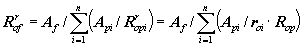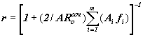 Примечание. Обозначения и схемы приняты по прил. 5* СНиП II-3-79* (изд. 1998 г.) Пример расчета Определить приведенное сопротивление теплопередаче панели с эффективным утеплителем (пенополистирол) и стальными обшивками общественного здания. А. Исходные данные Размеры панели 6×2 м. Конструктивные и теплотехнические характеристики панели: толщина стальных обшивок 0,001 м, коэффициент теплопроводности λ = 58 Вт/(м · °С), толщина пенополистирольного утеплителя 0,2 м, коэффициент теплопроводности 0,04 Вт/(м · °С). Отбортовка листового материала вдоль протяженных сторон панели приводит к образованию теплопроводного включения типа IIб (прил. 5* СНиП II-3-79* (изд. 1998 г.)), имеющего ширину a = 0,002 м. Б. Порядок расчета Сопротивления теплопередаче вдали от включения Rocon и по теплопроводному включению Ro′: Rocon = 1 / 8,7 + 2(0,001 / 58) + 0,2 / 0,04 + 1 / 23 = 5,16 м2 · °С/Вт; Ro′ = 1 / 8,7 + (2 · 0,001 + 0,2) / 58 + 1 / 23 = 0,162 м2 · °С. Значение безразмерного параметра теплопроводного включения для табл. Б.2 aλt / δisolλisol = 0002 · 58 / (0,2 · 0,04) = 14,5 По табл. Б.2 по интерполяции определяем величину ψ ψ = 0,43 + [(0,665 - 0,665) · 4,5] / 10 = 0,536 Коэффициент ki по формуле (2.8) ki = 1 + 0,536 [0,22 / (0,04 · 0,002 · 5,16)] = 52,94 Коэффициент теплотехнической однородности панели по формуле (2.7) r = 1 / {[5,16 / (12 · 0,162)] 0,002 · 6 · 52,94} = 0,593 Приведенное сопротивление теплопередаче по формуле (2.6) Ror = 0,593 · 5,16 = 3,06 м2 · °С/Вт. 2. Расчет коэффициента теплотехнической однородности r по формуле (2.9) Таблица Б.3 Таблица для определения коэффициента влияния fi