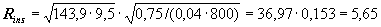 где E - норматив приведения, E = 0,1; n - число лет, в течение которых определяются эксплуатационные затраты; t = 1, 2, ..., n - порядковый номер года в интервале от первого до n-го года эксплуатации. Согласно постановлению Правительства Москвы (№ 1036) расчетный период учета эксплуатационных затрат следует принимать равным 30 годам, тогда Д.2.4.2. Трансмиссионные теплопотери за отопительный период через 1 м2 наружной ограждающей конструкции, в нашем случае стены, следует определять на основе формулы (3.8) МГСН 2.01-99: Qhty = 0,024 · (1 / Rw) · Dd · β (Д.3) где Rw - сопротивление теплопередаче по глади наружных стен, м2 · °С/Вт; β - коэффициент, учитывающий дополнительные теплопотери, связанные с ориентацией по странам горизонта: для жилых зданий β = 1,13, для общественных 1,1; Dd - градусосутки отопительного периода, принимаемые в зависимости от типа здания (п. 2.1). Д.2.4.3. С учетом изложенного формула (Д.2) преобразуется в следующий вид: а) для жилых зданий и общеобразовательных учреждений, руб P = Rw · λins · Cins + [(0,024 · 1,13 · 5027) / Rw] · Ch · 9,5 = Rw · λins · Cins + (136,3 / Rw) · Ch · 9,5 (Д.4) б) для поликлиник, домов-интернатов, руб P = Rw · λins · Cins + (143,9 / Rw) · Ch · 9,5 (Д.5) Стоимость тепловой энергии в соответствии с рекомендацией Правительства Москвы (№ 959 РП) следует принимать равной 30 долларов за 1 МВт · ч (0,03 доллара США за 1 кВт · ч). Оптимальное термическое сопротивление утеплителя Rins определяется путем дифференцирования формулы (Д.4) или (Д.5) по переменной величине Rw и приравнивания производной нулю. В результате получают: а) для жилых зданий и общеобразовательных учреждений где λins - коэффициент теплопроводности утеплителя Вт/(м · °С); Cins - стоимость 1 м3 утеплителя франко завод - изготовитель наружных стен, руб; Ch - стоимость 1 кВт · ч (равные 0,03 доллара США); б) для поликлиник и домов интернатов Толщина утеплителя, соответствующая оптимальному сопротивлению теплопередаче, составляет: δins = Row · λins (Д.8) Д.2.4.4. Оптимальное сопротивление теплопередаче стены (Row) определяется по формуле: Row = (Rins + Rins + 0,158) · r (Д.9) где Rcon - термическое сопротивление наружного и внутреннего бетонных слоев, м2 · °С/Вт; r - коэффициент теплотехнической однородности стены, принимается по расчету температурных полей. Д.2.4.5. Производится проверка соответствия условию: оптимальное сопротивление теплопередаче ограждения должно быть не менее значения, приведенного в п. 2.1 табл. 1а СНиП II-3-79* (изд. 1998 г.), первого этапа внедрения для ограждающих конструкций (за исключением светопрозрачных) в зависимости от вида здания. Оптимальное сопротивление теплопередаче Row должно быть больше минимально допустимого по санитарно-гигиеническим и комфортным условиям п. 3.3.3 (МГСН 2.01-99). Row > Roreq; Row > R для первого этапа теплозащиты. Д.2.4.6. Определяются приведенные затраты по трем вариантам толщин утеплителя: δins; δins - 2 см и δins + 2 см, что соответствует Pe, P1 и P2. В том случае, если Pe будет меньше P1 и P2 сопротивление теплопередаче стены является экономически целесообразным. Д.2.4.7. В том случае, если при переходе к производству нового типа стены (с Row) требуется реконструкция или замена парка форм, а также переоборудование других переделов завода в состав приведённых затрат включаются дополнительные затраты по реконструкции, отнесенные на объем выпуска продукции (руб/м2 конструкции) с учетом нормативного срока окупаемости капитальных вложений (СН-509, Инструкция по оценке эффективности но