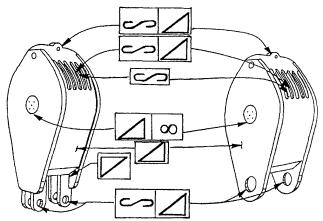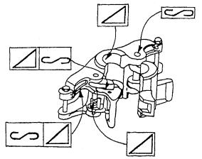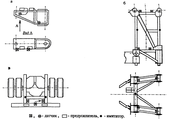 Приложение 5КАРТА ОСМОТРА ПОДЪЕМНИКАТиповые места металлоконструкций, механизмов и узлов отечественных и импортных подъемников, где возможно образование трещин, даны на рис. 5.1 - 5.9. Принятые условные обозначения, используемые в Карте осмотра подъемника, приведены в табл. 5.1. Осмотр подъемника выполняется в последовательности, изложенной на рис. 5.2 и в табл. 5.2 в соответствии с моделью подъемника. фрагменты диагностики состояния отдельных узлов подъемника приведены в табл. 5.3. Таблица 5.1 Условные обозначения, принятые в картах осмотра подъемника