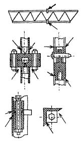 Рис. 1. Поперечное сечение мачты Рис. 2. Смещение осевой линии решетчатой конструкции Рис. 3. Деформация элемента решетчатой конструкции Таблица 4.2 Допустимые отклонения формы основных элементов металлоконструкций подъемника