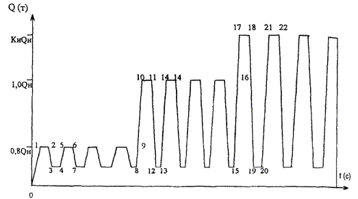 где А - разность показаний; L - расстояние между верхней и нижней линейками (поясами). 3.2. Статическое силовое испытание вышки (мачты) 3.2.1. Подготовительные работы 3.2.1.1. Экспертиза технической документации в соответствии с п. 3.1.1 настоящей Инструкции, а также сертификатов на канаты для оснастки талевой системы установки, оттяжек. 3.2.1.2. Вышка (мачта) подъемника приводится в транспортное положение. Определяется состояние (с использованием необходимых замеров) вышки (мачты), опорной рамы, транспортной базы, балконов. Выявленные дефекты вышки (мачты) устраняются в соответствии с п. 2.3 настоящей Инструкции. На верхний и нижний пояса вышки (мачты) и на ногах, примыкающих к этим поясам, крепятся металлические измерительные линейки. 3.2.1.3. Производится проверка состояния лебедки, талевой системы, других механизмов установки. 3.2.1.4. Установка устанавливается на испытательной площадке. Испытательная площадка для установки агрегата сооружается в соответствии с инструкцией по его эксплуатации с увеличением опорной площади на грунт, в 1,5 раза превышающим величину, необходимую для номинальной грузоподъемности агрегата. Якоря для оттяжек углубляются на 1,5-кратное значение установленной величины для нормальной эксплуатации агрегата. Конструкция якоря и трос оттяжек должны быть рассчитаны на 1,5-кратную перегрузку. 3.2.1.5. Вышка (мачта) поднимается в вертикальное положение и фиксируется в этом положении в соответствии с инструкцией по эксплуатации установки. Максимальное смещение оси талевого блока относительно оси приложения нагрузки на вышку (мачту) не должно превышать 50 мм. Вышка (мачта) закрепляется оттяжками, натянутыми с усилием, рекомендуемым инструкцией по эксплуатации установки. 3.2.1.6. Проверяется работа агрегата на холостом ходу и перпендикулярность оси вышки (мачты) к ее основанию. 3.2.2. Проведение статических силовых испытаний 3.2.2.1. В вертикальном положении вышки (мачты) на нижней и верхней измерительных линейках выбираются показания (любые); определяются их угловые координаты на шкале вертикальных углов теодолита. Показания теодолита регистрируются. Определяется соотношение угловых единиц теодолита с линейными единицами на измерительных линейках. 3.2.2.2. Нагружение вышки (мачты) проводится собственной лебедкой путем закрепления крюка подъемника за «мертвый якорь» или с применением других технических средств (вспомогательных лебедок, тракторов, домкратов). Пульт управления процессом нагружения должен быть установлен в безопасном месте (на расстоянии не менее высоты вышки плюс 10 м). 3.2.2.3. На вышку (мачту) создается номинальная нагрузка. Нагрузка выдерживается в течение 5 - 8 мин, после чего увеличивается до испытательного значения, равного 1,25 - 1,5 от номинального значения с последующей выдержкой 5 - 10 мин. 3.2.2.4. При испытательной нагрузке определяются угловые координаты на шкалах теодолита. Указанные углы регистрируются. 3.2.2.5. Определяется разность угловых координат выбранных точек (показаний) на шкалах измерительных линеек до нагружения и после нагружения вышки (мачты). Разность угловых координат переводится в линейные единицы - определяется остаточная деформация. Отсутствием остаточной деформации считается разность не более погрешности измерений. Допустимая погрешность измерения углов теодолита должна быть не более 30 с. При на