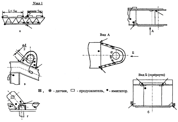 Приложение 6МЕТОДИКА АКУСТИКО-ЭМИССИОННОЙ ДИАГНОСТИКИ МЕТАЛЛОКОНСТРУКЦИЙ ПОДЪЕМНИКОВ ДЛЯ КАПИТАЛЬНОГО И ТЕКУЩЕГО РЕМОНТА СКВАЖИН1. Общие положения 1.1. Настоящая методика устанавливает порядок и объем работ при акустико-эмиссионных исследованиях по оценке технического состояния металлических конструкций подъемников согласно требованиям ГОСТ и нормативных материалов. 1.2. Целью АЭ-диагностики металлоконструкций подъемников является повышение достоверности оценки технического состояния металлоконструкций подъемников при их обследовании и в конечном счете повышение безопасности эксплуатации подъемников, рекомендуемых к эксплуатации. Кроме того, дополнительный экономический эффект возможен в результате оценки дефектов как «неопасных» для безопасной эксплуатации подъемника, которые при визуальном обследовании были признаны опасными, и требовался ремонт узла (элемента) металлоконструкций. 1.3. Настоящий методический материал предполагает уровень квалификации дефектоскописта не ниже II в области АЭ-диагностики и предназначен для специалистов, имеющих опыт выполнения работ и сертификат дефектоскописта. Ни одна часть данного документа не может быть размножена, перепечатана или переведена на другой язык без письменного разрешения авторов. По результатам АЭ-диагностики составляется Акт, рекомендуемая форма которого представлена в приложении 6.1.АЭ. 1.4. Методика составлена применительно к использованию Аэ-комплекса на базе приборов АФ-15 и ПЭВМ типа IВМ РС или ему подобного. 1.5. Термины, используемые в методике, определены ГОСТ 27655-88 «Акустическая эмиссия. Термины, определения, обозначения». Дополнительно приняты следующие термины: величина относительной энергии АЭ - определяется как квадрат амплитуды АЭ, умноженный на число осцилляции; активная зона АЭ - зона металлоконструкций, имеющая повышенную активность АЭ от дефекта в этой зоне, выявленного по принятым критериям; контролируемая зона металлоконструкций - область элемента (узла) металлоконструкций, ограничиваемая АЭ датчиками при локализации источника. 2. Порядок выполнения работ Порядок и объем работ зависят от требований к характеру диагностики металлоконструкций подъемника. Условно принимаются два типа диагностики: в первом случае производится комплексная оценка технического состояния металлоконструкций подъемника; этой оценке подвергаются металлоконструкции, например, подъемников, отработавших нормативный срок службы, а также подъемников, у которых необходима оценка технического состояния всех узлов металлоконструкций; во втором случае выполняется диагностика определенной зоны конкретного узла (элемента) металлоконструкций подъемника; в данном случае выполняется дополнительная оценка технического состояния и несущей способности узла (элемента) подъемника, например, подъемника, у которого узел (элемент) металлоконструкций подвергался ремонту либо элемент содержит трещины (остаточные деформации). 2.1. Комплексная оценка технического состояния металлоконструкций подъемника При комплексной оценке подъемника АЭ-диагностикой выполняются следующие этапы: предварительный; подготовительные работы; оценка общего фона АЭ металлоконструкций подъемника; АЭ-диагностика контролируемых зон; анализ результатов, принятие решения. 2.2. Оценка технич