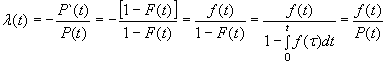 где N(t) - число элементов, исправных к моменту времени t; Δn(t, Δt) - число элементов, отказавших именно в интервале времени [t, t + Δt] (на практике Δt должно быть достаточно мало, Δn(t, Δt) - достаточно велико); Δt - длительность интервала. 2.4. Вероятность безотказной работы и интенсивность отказов связаны между собой соотношением