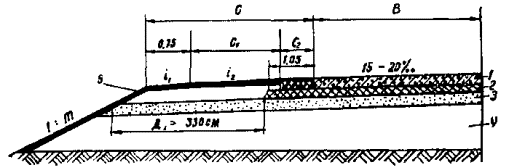 РЕКОМЕНДАЦИИ Одобрены Минтрансстроем Москва 1976 Содержат основные положения по рациональному использованию комплекта высокопроизводительных машин со скользящими формами при строительстве дорожной одежды с цементобетонным покрытием. Приведены рекомендации по выбору конструкции дорожной одежды, планировке земляного полотна, устройству подстилающих слоев, оснований из каменных материалов и укрепленных грунтов и цементобетонного покрытия. Предназначены для проектных и строительных организаций. Табл. 3, рис. 7. ПредисловиеСтроительство дорожной одежды с цементобетонным покрытием в скользящих формах является в настоящее время наиболее прогрессивной технологией, обеспечивающей резкое увеличение темпов строительства, производительности труда и снижение затрат ручного труда. В «Методических рекомендациях по конструкции и технологии строительства дорожных одежд с цементобетонным покрытием, устраиваемых высокопроизводительным комплектом машин со скользящими формами» приведены общие положения по использованию комплектов, рекомендации по выбору конструкции дорожной одежды с цементобетонным покрытием, технологические особенности планировки земляного полотна, устройства подстилающих слоев оснований из каменных материалов и укрепленных грунтов, а также цементобетонного покрытия. «Методические рекомендации» разработаны на основе исследований и обобщения опыта строительства в 1973 - 1975 гг. Б. С. Марышевым, А. М. Шейниным, Л. Б. Каменецким, М. А. Либерманом, Р. А. Коганом при участии И. Л. Гурячкова, А. С. Дудкина, В. С. Исаева, Г. Н. Фабрикантова, В. А. Чернигова, И. Н. Глуховцева, В. Д. Гущина, В. И. Коршунова, П. Т. Петербургского, В. В. Силкина. 1. Общие положения1.1. Настоящие «Методические рекомендации» распространяются на конструкцию дорожной одежды с цементобетонным покрытием и технологию ее устройства при использовании комплектов высокопроизводительных машин со скользящими формами и являются дополнением к действующим нормативно-техническим документам по строительству дорожной одежды с цементобетонным покрытием. 1.2. Устройство дорожной одежды следует осуществлять с учетом настоящих «Методических рекомендаций» и технологических карт на отдельные виды работ, составленных Оргтрансстроем с участием Союздорнии. 1.3. Ровность и толщина конструктивных слоев дорожной одежды обеспечивается в автоматическом режиме работы машин комплекта либо при постоянных отметках копирной струны, начиная с земляного полотна, либо от отметок укрепленного основания, т.е. от опорных площадок гусеничных движителей. 2. Конструкция дорожной одежды с цементобетонным покрытием2.1. Основание устраивают из грунтов и каменных материалов, укрепленных неорганическими вяжущими, 1 класса прочности (СН 25-74) на ширину 9,6 м, обеспечивающую проход гусениц комплекта по ровному основанию и лучшие условия работы края плиты покрытия под нагрузкой. Как исключение допускается основание из неукрепленных каменных материалов с расклинивающим щебнем и выравнивающим слоем толщиной не менее 4 см. 2.2. Толщину основания назначают по расчету, но не менее 16 см. При устройстве оснований из цементогрунта выравнивающих слоев между покрытием и основанием не устраивают. Разделительной прослойкой при этом служит материал ухода за цементогрунтом. 2.3. Морозозащитные и подстила