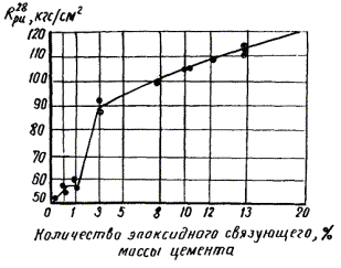 График для определения расхода эпоксидного связующего 18. Количество воды, необходимое для достижения требуемой подвижности (жесткости) полимерцементного бетона, определяют экспериментально с учетом введенного количества эпоксидного связующего. Ориентировочное значение В/Ц при одинаковой подвижности смеси в зависимости от расхода эпоксидного связующего приведено в таблице.