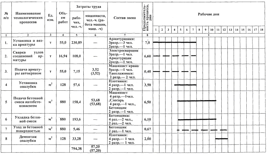 Таблица 13 - График производства работ на устройство фундаментной плиты с помощью автобетононасоса Измеритель конечной продукции 1 плита
