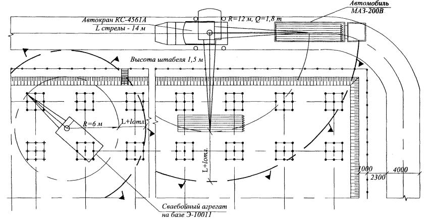 Рисунок 8 - Технологическая схема забивки свай или погружения труб 6.2 Запрещается вести забивку в охранных зонах подземных коммуникаций и воздушных линий электропередачи без согласования с эксплуатационной организацией. 6.3 Расстояние от места забивки свай до расположения действующих коммуникаций (газопровод, водопровод, канализация и т.д.) составляет не менее 3 м, а в зимний период - не менее 5 м и должно быть согласовано с организацией, эксплуатирующей коммуникации. В акте приемки-передачи площадки под забивку свай, металлических балок и труб должны быть указаны тип, месторасположение подземных коммуникаций и наличие согласований на производство свайных работ с организациями, эксплуатирующими коммуникации. Забивка в вышеуказанных случаях, а также вблизи проложенных электрокабелей и в охранной зоне воздушных линий электропередачи производится только при наличии наряда-допуска, подписанного главным инженером строительной организации, и ППР, согласованных с эксплуатационной организацией. Таблица 6 - Техническая характеристика кранов-экскаваторов