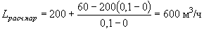 Минимальный расход приточного воздуха следует принять Lрасч. нар = 600 м3/ч. Методика на основе расчета допустимых концентраций загрязняющих веществ наиболее приемлема для рассматриваемого случая, т. к. в помещении присутствуют интенсивные источники загрязняющих веществ. |