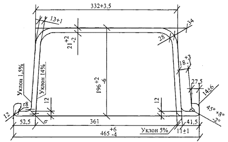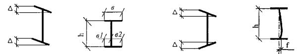 2.5 Кривизна двутавра не должна превышать 0,2 % длины, а прогиб стенки f не должен превышать 0,15s. Уклон внутренних граней полок должен быть 6 - 12 %. 2.6 Притупление наружных кромок полок двутавров повышенной точности не должно превышать 2,2 мм, для двутавров обычной точности - не контролируется. 2.7 Несимметричность фланцев полок балок относительно вертикальной оси не должна превышать 1/2 суммы предельных отклонений по ширине полки. 2.8 Двутавровые балки изготовляются длиной от 4 м до 12 м. По требованию заказчика допускается изготовление двутавров длиной свыше 12 метров. 2.9 Отклонения по массе 1 м двутавра не должны превышать плюс 3, минус 5 %. По согласованию изготовителя с потребителем отклонение по массе без контроля толщины полок и стенки двутавра не должно превышать плюс 3, минус 3 % для двутавров до № 16 и плюс 2,5, минус 2,5 % для двутавров свыше 16. 2.10 Контроль размеров производится на расстоянии не менее 500 мм от торца профиля. Высота двутавра контролируется в плоскости У-У. 2.11 Шпунты «Ларсен-IY» и «Ларсен-Y», геометрические размеры которых представлены на рисунке 2, поставляются на объекты Московского строительного комплекса длиной 8 - 12 м по ТУ 14-1-4-71.