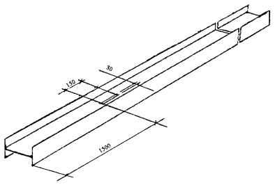 4.5 Контрольные замеры толщины полок и стенок извлеченного шпунта следует производить на расстоянии не менее 500 мм от торцов и через каждые 2 метра по длине шпунта. 4.6 После осмотра шпунта и определения соответствия его геометрических параметров требуемым величинам на шпунт краской наносят порядковый маркировочный номер, являющийся знаком годности шпунта для повторного использования. Шпунт считается бракованным, если фактические толщины сечений при инструментальных замерах меньше допустимых минимальных величин по ГОСТу. На забракованном шпунте наносится краской надпись «БРАК». 4.7 На строительной площадке у представителя лаборатории строительной организации должен находиться журнал учета и регистрации извлеченного шпунта, составленный по форме приложения А. После каждой смены составляется акт отбраковки извлеченного шпунта по форме приложения Б. 4.8 Извлеченный шпунт может иметь следующие дефекты: - деформированные торцы, полки, стенки; - изгиб шпунта по его длине; - ослабление сечения шпунта от коррозии металла. 4.9 При отбраковке шпунта, в случае, когда дефект распространен на небольшой протяженности по длине, поврежденную часть отрезают. 4.10 На строительной площадке необходимо предусмотреть размещение штабеля годного для повторного использования шпунта и штабеля отбракованного шпунта с указанием соответствующих табличек. 4.11 Шпунт, годный для повторного применения, вывозят на склад строительного управления или склад УПТК и складируют на специально отведенной площадке. 4.12 При необходимости стыковки шпунта стык должен выполняться равнопрочным основному сечению согласно рисунку 9. Сварные соединения должны удовлетворять требованиям таблицы 6. Марка стали элементов и накладок Ст.3. Сварочные работы выполняются электродами типа Э-42А. Рисунок 9 - Сварной стык двутавровых балок при наращивании шпунта Таблица 6 - Характеристика сварных швов