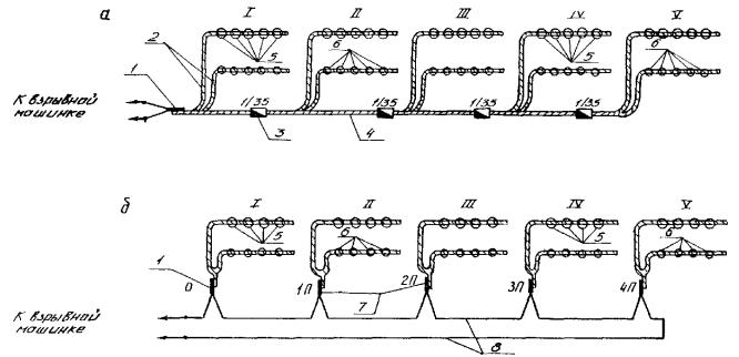 соответственно фактическим размерам траншеи, схема взрывания с рациональным