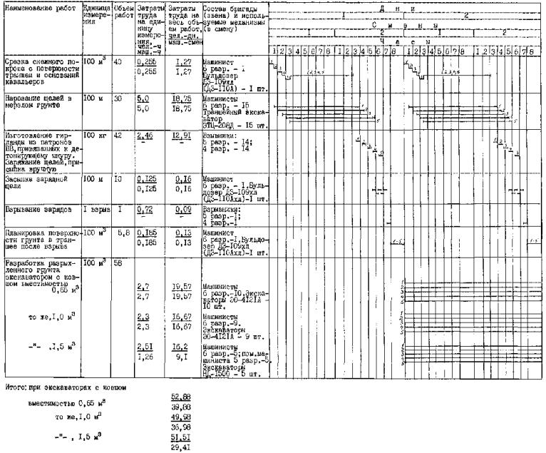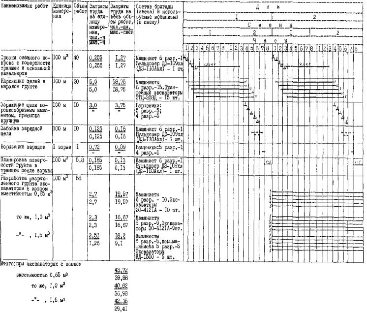устройства траншеи длиной 1000 м при двухсменной работе механизмов.