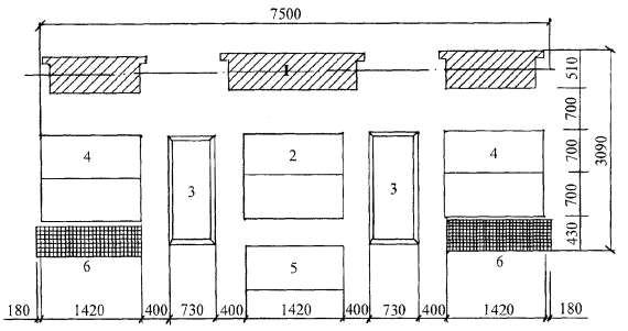 Условные обозначения: 1. Выкладываемая перегородка. 2. Поддон с лицевым керамическим кирпичом. 3. Ящик с раствором. 4. Капитальная стена.