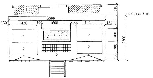 3 Подготовка процесса и условия его выполнения 3.1 До начала кладки необходимо: - убрать с рабочего места мусор и посторонние предметы; - разбить фронт работ на захватки и делянки; - нанести осевые риски для кладки стены; - проверить горизонтальность и вертикальность нижележащего основания под кладку; - расположить материалы, инструменты и приспособления в соответствии со схемой организации рабочего места; - установить подмости для кладки второго и третьего ярусов и проверить их исправность. 3.2 Работы следует выполнять, соблюдая требования техники безопасности согласно СНиП 12-03-2001 и СНиП III-4-80* и правила производства и приемки работ согласно СНиП 3.03.01-87. 4 Технология и организация процесса 4.1 Кладка сложных наружных стен толщиной в 2 кирпича из семищелевых керамических камней с облицовкой одинарным керамическим кирпичом выполняется в следующей последовательности: - установка порядовок и натягивание причального шнура; - подача и раскладка камней и кирпича; - перемешивание, подача и разравнивание раствора; - кладка стены с облицовкой; - расшивка швов кладки; - проверка качества кладки. 4.2 Организация рабочего места.