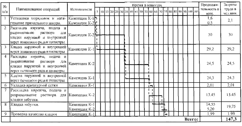 4.3 График трудового процесса на 1 м3 кладки
