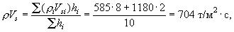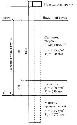 где rVs - сейсмическая жесткость грунта расчетной толщи, т/м2×с; r - плотность грунта, т/м3; Vs - скорость поперечных сейсмических волн в расчетной толще, м/с. 3.18. Если расчетная толща грунта состоит из нескольких слоев, то в этом случае принимается во внимание средневзвешенная сейсмическая жесткость пачки слоев, определяемая по формуле