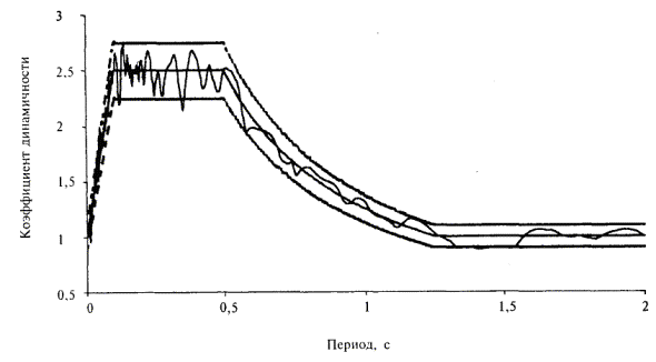 График сейсмического режима Далее определяем поправку на сейсмический режим в виде множителя Кс.p к параметрам колебаний грунта при толчке силой 9 баллов. При этом будем считать, что при сейсмическом воздействии силой 9 баллов ускорение колебаний среднего по сейсмическим свойствам грунта вблизи створа достигает 0,4g, где g - ускорение силы тяжести. Коэффициент Кс.р равен отношению ускорений колебаний грунта при толчке силой 8,6 балла и при толчке силой 9 баллов, указанной на карте ОСР-97-В как сейсмичность района транспортного перехода. Как известно, нормативные величины ускорения горизонтальных колебаний грунта образуют возрастающую геометрическую профессию со знаменателем 2. Таким образом, искомый коэффициент вычисляется по формуле Kc.p = 2dI, где dI = -0,4 балла - изменение балльности за счет использования расчетных данных о сейсмическом режиме места перехода. По формуле Кс.p = 2-0,4 находим величину коэффициента к ускорению 0,4g, которая с округлением до первой значащей цифры равна 0,8. Следовательно, поправка на сейсмический режим позволяет в данном случае уменьшить расчетное ускорение грунта на 20 %. В таком же размере уменьшаются другие параметры колебаний грунта (скорость и перемещение). Применение изложенной процедуры УИС позволяет рассчитывать сооружения одного класса ответственности с одинаковой обеспеченностью по отношению к сейсмическому воздействию. Это позволяет в одних случаях существенно уменьшить стоимость антисейсмических мероприятий, в других - повысить сейсмостойкость строящихся (реконструируемых) сооружений до требуемого уровня и избежать тяжелых социально-экономических потерь от предстоящих землетрясений. При выполнении работ по сейсмическому микрорайонированию участков строительства транспортных сооружений в части учета местных инженерно-геологических условий наиболее широко применяется метод сейсмических (акустических) жесткостей, принципиальные основы которого разработаны С.В. Медведевым [13, 14]. Метод основан на эмпирически установленном факте влияния сейсмической жесткости грунтов на интенсивность их колебаний при землетрясениях и на степень повреждения зданий. С.В. Медведев принимал, что за счет различия сейсмической жесткости наиболее прочных невыветрелых скальных пород и самых слабых насыпных грунтов, расположенных выше УГВ, приращение силы землетрясения составляет 3 балла по шкале MSK-64. Согласно упомянутой предпосылке приращение балльности на исследуемой площадке, сложенной грунтом естественной влажности, по отношению к наиболее прочному скальному (эталонному) грунту определяется по формуле dI = 1,67[lg(rэтVэт) - lg(rиcVис)], где dI - приращение силы сейсмического воздействия, баллы шкалы MSK-64, на исследуемой площадке по отношению к наиболее безопасному в сейсмическом отношении участку за счет различия сейсмической жесткости грунтов; Vэт и Vис - скорости продольных сейсмических волн, км/с, в граните и в исследуемом грунте; rэт и rис - плотности гранита и исследуемого грунта, т/м3. В дальнейшем методика СМР по способу сейсмических жесткостей была существенно дополнена на основании данных многих теоретических и экспериментальных исследований. В частности, Н.Д. Красников [12] предложил для оценки сейсмичности строительных площадок дополнительно использовать скорости поперечных волн. Для оценки влияни