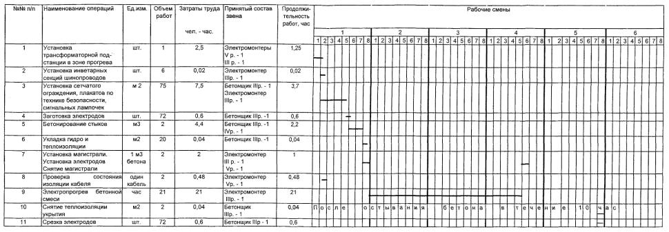 5. ГРАФИК ПРОИЗВОДСТВА РАБОТ5.1. Электродный прогрев бетона при замоноличивании шести стыков колонн сечением 400´400 мм с фундаментом