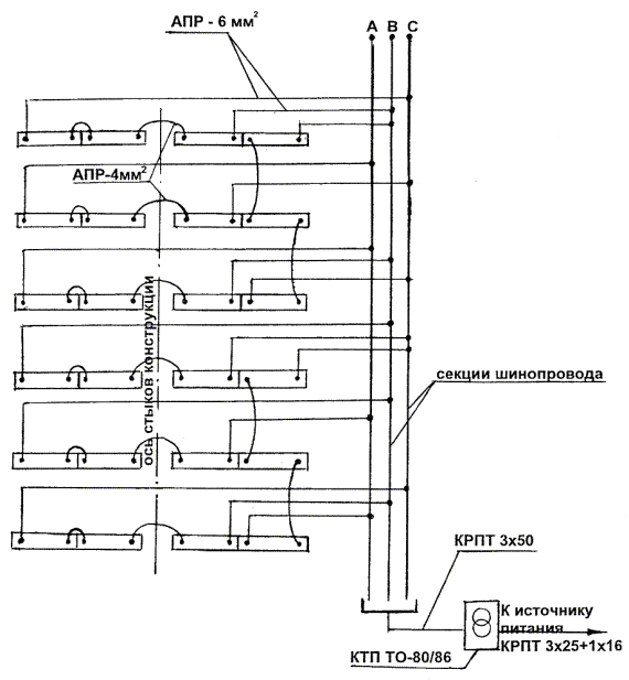 Рис. 6. Электрическая схема индукционного прогрева бетона при замоноличивании стыков
