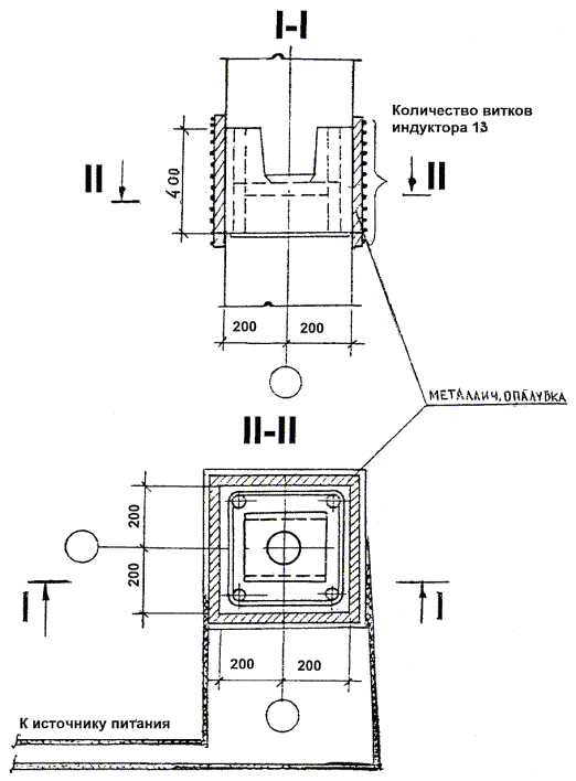 5.2. Индукционный прогрев бетона при замоноличивании шести стыков колонн сечением 400´400 мм