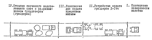 Устройство корыта в земляном полотне грейдером Д-144 |