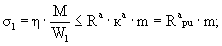 б) проверяем напряжение в нижней точке укатываемого бетона по формуле (6) с учетом (7) и (8):