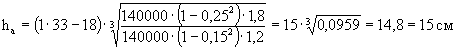 4. Толщину нижнего слоя двухслойного покрытия hб приравниваемой равной 18 см определяем по формуле (3) толщину верхнего слоя асфальтового бетона hа