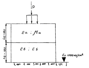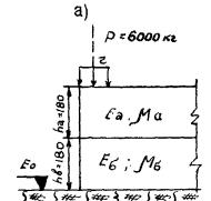Приложение 16.РАСЧЕТ КОНСТРУКЦИЙ ДОРОЖНЫХ ОДЕЖД С ОСНОВАНИЕМ ИЗ УКАТЫВАЕМЫХ МАЛОЦЕМЕНТНЫХ БЕТОНОВ И АСФАЛЬТОБЕТОННЫМ ПОКРЫТИЕМ1. Расчет конструкций дорожных одежд с основанием из укатываемых малоцементных бетонов и асфальтобетонным покрытием В настоящее время толщину бетонного основания под асфальтобетонное покрытие принято определять, используя выводы теории упругости. Величина расчетной нагрузки учитывается без коэффициента динамики, так как считается, что подвижная нагрузка и бетонное основание разделены слоем асфальтового бетона, воспринимающего динамическое воздействие автотранспорта и распределяющего приложенную к покрытию нагрузку под углом a, равным или близким к 45°, к поверхности основания. При этом исходят из условия, что асфальтовый бетон плохо сопротивляется изгибу, поэтому его толщина назначается конструктивно. В результате проведенных исследований физико-механических свойств асфальтовых бетонов, применяемых в Москве, и многолетнего опыта эксплуатации таких покрытий на нежестких, а также на бетонных основаниях были установлены некоторые особенности работы таких покрытий в условиях II климатической зоны. Эти исследования показали, что появление трещин и нарушение целостности покрытий происходит, в основном, в период нулевых и небольших отрицательных и положительных температур, когда несущая способность переувлажненного основания минимальна, а асфальтовый бетон не дает значительных прогибов и работает как упругожесткий материал. Для учета этих особенностей работы асфальтобетонных покрытий, когда их эксплуатационное состояние определяется не максимально допустимой величиной прогиба, а в большей степени кривизной поверхности, правильнее определять толщину покрытия, используя выводы теории упругости. Ниже изложена методика, разработанная на основе теории изгиба многослойных плит на упругом основании, применительно к расчету двухслойного покрытия из слоя асфальтового бетона на слое укатываемого малоцементного бетона. При расчете слоистых покрытий исходят из того, что справедлива гипотеза прямых нормалей, и принимают некоторый общий для всех материалов коэффициент поперечной деформации m и коэффициент линейного температурного расширения a. Если эти коэффициенты имеют различные числовые значения, можно определять их средние (арифметические, квадратичные и т.д.) величины. При расчете слоистых покрытий на прочность эпюры напряжений (нормальных dx(i), dy(i), касательных tху(i), tух(i) и температурных Ddt(i)) в пределах толщины каждого слоя имеют плавное очертание. При переходе из одного слоя в другой эпюры dx(i), dy(i) и Ddt(i) приобретают скачки, которые тем меньше, чем ближе расчетные характеристики материалов. Эти напряжения возрастают с удалением от нейтральной оси за исключением горизонтальных напряжений сдвига, которые у нейтральной оси наибольшие. Поэтому нежелательно, чтобы граница слоев, по которой сопротивление наименьшее, совпадала бы с нейтральной плоскостью. Этого не произойдет, если толщина слоя асфальта ha будет равна толщине слоя укатываемого бетона hб, так как их модули упругости и коэффициенты Пуассона не равны Еа ¹ Еб и mа ¹ mб. В связи с тем, что модуль упругости асфальтового бетона Еа обычно несколько меньше модуля упругости укатываемого малоцементного бетона Еб, совпадения этих пл