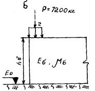 Рис. 4. Расчетные схемы для определения отрицательного изгибающего момента: а - для двухслойного покрытия; б - для однослойного в) проверяем прочность одежды от действия отрицательного момента (при загружении угла) по наибольшим растягивающим напряжениям на поверхности покрытия и на границе слоев в укатываемом бетоне. Наибольший отрицательный изгибающий момент от углового загружения определяем по формуле И.А. Медникова. Вспомогательная толщина покрытия из укатываемого бетона, эквивалентная рассматриваемому (рис. 4), составит: