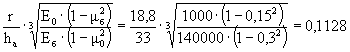 здесь Н1 = к1×Н, где Н - толщина монолитной плиты из укатываемого малоцементного бетона, необходимая при данной нагрузке с точки зрения прочности и жесткости плиты; к1 - коэффициент, учитывающий слоистость конструкции. Если динамические качества асфальтового бетона и укатываемого малоцементного бетона оценивать соответственно коэффициентами кд и кд, то для предварительного приближенного определения толщины слоя асфальтового бетона из условий второго расчетного предельного состояния получаем: В этой формуле при прочном сцеплении слоев, когда взаимное проскальзывание их исключено, к1 = 1. Наибольшее значение к1, рекомендуемое действующими «Техническими условиями проектирования аэродромных покрытий», равно 1,3. В первом приближении с учетом проскальзывания эту эмпирическую величину следует определять по формуле: