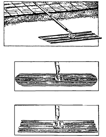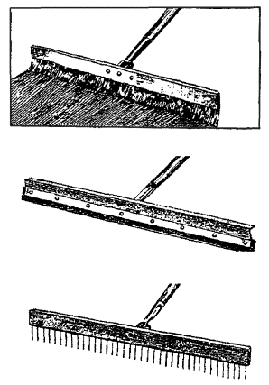 Инструменты для обработки поверхности из свежеуложенного бетона с волосяной щеткой, резиновой насадкой и приспособлением для создания текстуры поверхности