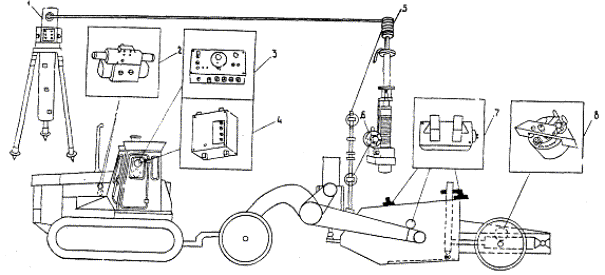 Рис. 4. Геодезическая лазерная рейка Технические характеристики и инструкция по эксплуатации аппаратуры «Копир-Стабилоплан» Техническая характеристика скрепера ДЗ-77-С-1 Базовый трактор........................................................................... Т-130.1.Г-2 Вместимость ковша, м3: геометрического................................................................. 8 + 1,2 с «шапкой», до.................................................................... 11 Грузоподъемность скрепера, кН................................................ 157 Ширина резания, мм, не менее.................................................. 2580 Максимальное заглубление, мм................................................. 200 Толщина слоя отсыпки, мм, не менее....................................... 400 Тип управления............................................................................ гидравлический Диапазон срабатывания системы защиты от перегрузки, об./мин................................................... 700 - 800 Способ разгрузки ковша.............................................................. принудительный Дорожный просвет под ножами, мм......................................... 510 Колея колес, мм: передних.............................................................................. 1600 задних.................................................................................. 2150 База в транспортном положении, мм........................................ 6300 Габаритные размеры в транспортном положении (без трактора), мм: длина.................................................................................... 9915 ширина................................................................................. 3145 высота.................................................................................. 2680 Радиус поворота, м...................................................................... 14 Техническая характеристика аппаратуры системы «Копир-Стабилоплан-10» Диапазон плавной установки стабилизируемого уклона, %...................................................... ± 8,8 Диапазон ступенчатой установки уклона, град........................ ± 48 Диапазон дистанционного задания установки ФПУ, мм....................................................... от 0 до 200 Диапазон срабатывания системы защиты двигателя от перегрузки, об/мин.................................. 700 - 800 Номинальный расход жидкости гидрозолотника, л/мин................................................................ 70 Габаритные размеры (длина´ширина´высота), мм: пульта управления.............................................................. 315´290´159 блока перегрузки................................................................ 206´166´130 гидрозолотника.................................................................. 373´178´84 устройства перемещения ФПУ......................................... 820´280´140 Габаритные размеры (диаметр, высота), мм: датчика частоты оборотов................................................. 60´100 датчика ДКБ........................................................................ 156´150 Напряжение питания (постоянный ток), В............................... 12 Потребляемый ток, А.................................................................. 3,5 Масса аппаратуры, кг.................................................................. 60 Техническая характеристика автогрейдера ДЗ-31-1 Мощность двигателя, кВт........................................................... 99 Управление рабочим органом.................................................... гидравлическое Количество скоростей: вперед.................................................................................. 4 назад.................................................................................... 8 Скорость движения автогрейдера, км/ч: вперед наименьшая................................................................ 2,2 наибольшая................................................................ 43 назад наименьшая................................................................ 4,7 наибольшая................................................................ 25,2 Длина отвала, мм......................................................................... 3745 Высота отвала, мм....................................................................... 620 Боковой вынос отвала в обе стороны относительно тяговой рамы, мм................................................ 800 Угол установки отвала в горизонтальной плоскости, 
