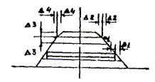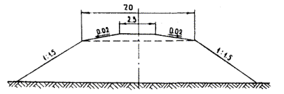 Схема поперечного профиля насыпи с обозначением предельных отклонений Примечания. 1. Толщину отсыпаемых слоев следует назначать в зависимости от условий производства работ, вида грунтов, применяемых уплотняющих машин в соответствии с ВСН 186-75. 2. Плотность верхней части насыпей толщиной 0,5 - 1 м после уплотнения должна быть не менее 1,45 г/см3. 3. Отклонения от проектной плотности в сторону понижения допускаются не более чем в 10 % проб. По абсолютной величине отклонения должны быть не более 0,04 г/см3. 4. Для насыпей следует применять грунты, имеющие оптимальную влажность или близкую к ней. 5. Увеличение крутизны откосов не допускается. 6. Число проходов уплотняющих машин устанавливается пробным уплотнением. 7. Поверхность слоев из менее дренирующих грунтов, располагаемых под слоями более дренирующих, должна иметь уклон в пределах 0,04 - 0,1 от оси насыпи к краям; поверхность слоев из более дренирующих грунтов, располагаемых под слоями менее дренирующих, должна быть горизонтальной; возведение насыпей из неоднородных грунтов, состоящих из песка, суглинка и гравия, допускается лишь в виде естественной карьерной смеси.