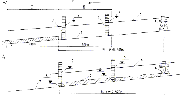 Министерство транспортного строительства Всесоюзный проектно-технологический институт транспортного Технологическая карта Москва 1984 Технологическая карта разработана Всесоюзным проектно-технологическим институтом транспортного строительства «ВПТИтрансстрой» Минтрансстроя совместно с научно-производственным объединением Всесоюзного научно-исследовательского института строительного и дорожного машиностроения (НПО ВНИИстройдормаш) Минстройдормаша. Технологическая карта рассмотрена на заседании технического совета ВПТИтрансстроя, протокол № 10 от 28.12.83 г. Исполнители: Зав. отделом строительства железных дорог А.Б. Набатов Гл. конструктор отдела автодорог и аэродромов В.Н. Захаров Зав. лабораторией ВНИИстройдормаша Э.И. Толстопятенко Редактор Ю.Н. Дерюгин СОДЕРЖАНИЕ 1. Область применения1.1. Содержание технологической карты Технологическая карта составлена на возведение насыпи однопутного железнодорожного земляного полотна, с разработкой грунта II группы из смежной выемки прицепными скреперами, оснащенными системой автоматики «Копир-Стабилоплан» с применением при планировке верха земляного полотна и нарезке сливной призмы автогрейдера, оснащенного системой автоматики «Профиль-20», работающей по лазерным направляющим. 1.1.1. Краткое описание работы системы автоматики «Копир-Стабилоплан» Система автоматики «Копир-Стабилоплан» состоит из лазерного излучателя, фотоприемного устройства с механизмом перемещения, электрогидрораспределителя, электронных датчиков для управления задней стенкой ковша скрепера, системой автоматического управления рабочим органом при перегрузке двигателя, блока управления подъемным устройством и пультом управления системой автоматики. Принципиальная схема работы скрепера ДЗ-77-1 с системой автоматики «Копир-Стабилоплан» показана на рис. 1. Управление ковшом скрепера состоит в перемещении его по высоте для удержания режущей кромки ковша на траектории заданной плоскости при движении машины вдоль планируемой поверхности. Автоматическая стимуляция рабочих органов машин обеспечивается применением копирной системы, в которой опорная оптическая заданная плоскость создается вращением лазерного луча при помощи пентопризмы, скорость вращения которой выбрана исходя из максимальной рабочей скорости перемещения строительных машин и составляет 72 - 108 об./мин, а чувствительным элементом является фотоприемное устройство. Рис. 1. Принципиальная схема работы скрепера ДЗ-77С-1 с аппаратурой «Копир-Стабилоплан»: 1 - лазерный излучатель; 2 - электрогидрораспределитель; 3 - пульт управления скрепером; 4 - блок управления подъемным устройством; 5 - фотоэлектрический приемник; 6 - подъемное устройство; 7 - бесконтактный электрический датчик автономной системы управления задней стенкой; 8 - угловой датчик автономной системы управления положением режущей кромки ковша В качестве источника излучения используется гелий-неоновый лазер СКГ-13, работающий в непрерывном режиме на волне 0,6328 мкм с выходной мощностью не менее 20 мкВт. Дальность действия излучателя - до 500 м. Фотоприемное устройство (рис. 2), состоящее из трех фотоэлементов (верхнего, среднего и нижнего), вместе с механизмом перемещения устанавливается на кронштейне, который закрепляется на рабочем органе машины. Фотоэлементы подключены к эле