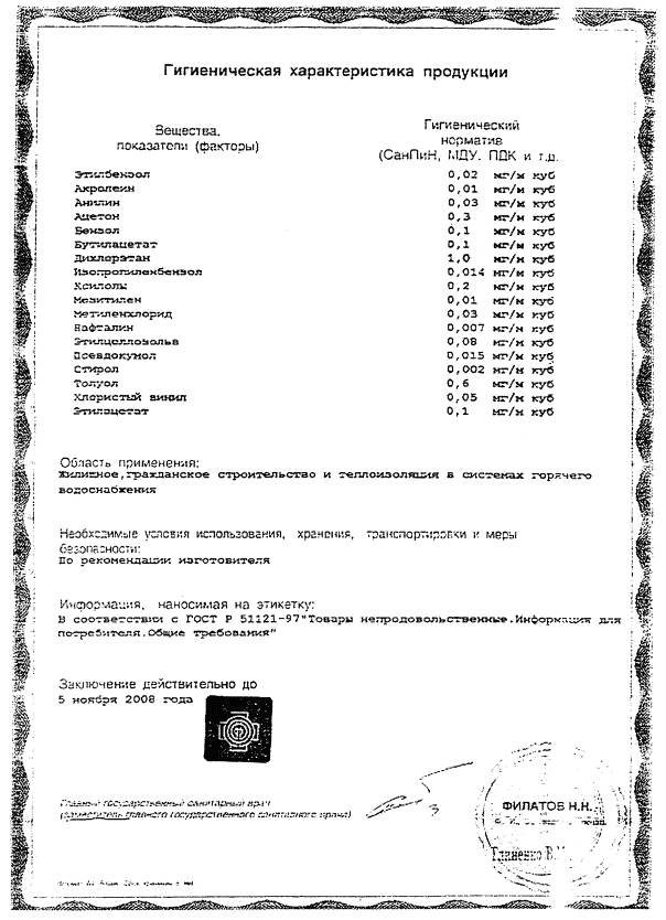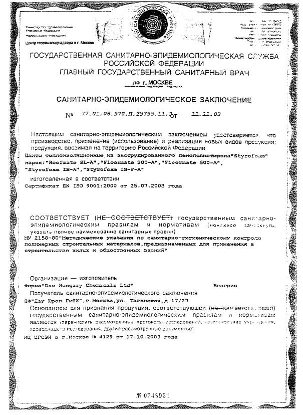1.5 Требования к маркировке панелей1.5.1 Маркировка панелей должна быть выполнена в соответствии с требованиями ГОСТ 13015. 1.5.2 Маркировочные надписи и знаки должны быть нанесены на боковые грани панелей. 2 ТРЕБОВАНИЯ БЕЗОПАСНОСТИ2.1 Экструдированный пенополистирол «Styrofoam» при нормальных условиях не выделяет в окружающую среду токсичные вещества и не оказывает вредное воздействие на организм человека при непосредственном контакте с ним. Его применение не требует специальных мер предосторожности. Класс опасности 4 по ГОСТ 12.1.007. 2.2 Экструдированный пенополистирол «Styrofoam» относится к группе горючести Г1. Температура его воспламенения 225 °С, температура самовоспламенения 345 °С. При горении из него выделяются высокотоксичные продукты. В случае возгорания пламя необходимо тушить в изолирующем противогазе. Тушение можно производить любыми средствами пожаротушения. 2.3 К работе по раскрою плит пенополистирола в панели допускаются лица не моложе 18 лет, прошедшие медицинское освидетельствование, инструктаж и обучение по технике безопасности по утвержденной программе с последующими периодическими проверками знаний и имеющие допуск к самостоятельной работе. 2.4 Работа по раскрою плит пенополистирола должна производиться в спецодежде с применением индивидуальных средств защиты (костюм х/б, обувь, перчатки резиновые, рукавицы х/б, очки защитные, респиратор). 2.5 Запрещается подвергать экструдированный пенополистирол «Styrofoam» воздействию открытого огня. В помещении, где производится раскрой полос, должно быть запрещено курение. 2.6 В местах хранения, обработки и укладки пенополистирола в панели должны быть приняты меры по предотвращению попадания на него веществ, содержащих продукты перегонки нефти. 3 ОХРАНА ОКРУЖАЮЩЕЙ СРЕДЫ3.1 Отходы раскроя полос экструдированного пенополистирола «Styrofoam» должны упаковываться в любую закрытую тару и направляться на предприятие-поставщик для утилизации. 3.2 Остальные отходы производства панелей по настоящим техническим условиям должны транспортироваться в официально установленные места складирования твердых промышленных отходов. 4 ПРИЕМКА4.1 Панели должны приниматься отделом технического контроля предприятия-изготовителя партиями. В состав партии включают панели, последовательно изготовленные предприятием по одной технологии из материалов одного вида, по одному и тому же технологическому регламенту. Срок формирования партии - по ГОСТ 13015. 4.2 Приемку панелей следует выполнять по результатам входного, операционного контроля, периодических и приемо-сдаточных испытаний, которые должны быть отражены в соответствующих журналах. 4.3 Входным контролем проверяется соответствие качества применяемых материалов и изделий требованиям подраздела 1.4, а также наличие документов о качестве, сертификатов соответствия, заключений органов санитарно-эпидемиологического надзора. Порядок входного контроля должен соответствовать установленному в технологической документации предприятия-изготовителя панелей. Соответствие фактических значений показателей экструдированного пенополистирола «Styrofoam» требованиям, указанным в таблице 4, должно проверяться периодическими испытаниями не реже одного раза в год, а также при изменении поставщиков. Соответствие показателей стеклопластиковой арматуры для связей 
