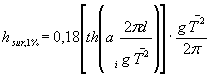 глубиной d ≤ 0,5 дна i* ≤ 0,001 или практически горизонтальном дне; зона трансформации - область уменьшающихся глубин с уклонами дна i* > 0,001, по которой волны распространяются из глубоководной или мелководной акватории; прибойная зона - с глубинами от dcr до dcr,u, в пределах которой начинается и завершается разрушение волн; приурезовая зона - с глубиной менее dcr,u, в пределах которой происходит накат волн на берег, т.е. поток от обрушенных волн периодически набегает на береговой откос или пляж; зона дифракции - акватория, огражденная одиночным молом, сходящимися молами, волноломом или комбинациями перечисленных типов сооружений. 2.2. Превышение вершины волны над расчетным уровнем ηc, м, для акваторий и зон, перечисленных в п. 2.1 настоящих Указаний, исключая приурезовую, следует принимать по СНиП 2.06.04-82* (Приложение 1, п. 16). 2.3. Элементы волн на открытых глубоководных и мелководных акваториях, в зоне трансформации, прибойной зоне и на огражденных акваториях необходимо определять в соответствии с требованиями СНиП 2.06.04-82* и рекомендациями настоящих Указаний. 2.4. Допускается использование аэрогидродинамических моделей расчета ветровых волн (Приложение 3), при их тестовой проверке по формулам Указаний. Элементы волн на глубоководной акватории2.5. Среднюю высоту волны на глубоководной акватории hd, м, при простых условиях волнообразования (ветер постоянной скорости и направления, прямолинейный берег) необходимо определять с учетом скорости ветра а также разгона или продолжительности действия ветра по формулам: