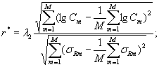 Адекватность экспериментальных данных выбранному виду зависимости проверяют путем сравнения выборочного коэффициента корреляции r*, вычисленного для зависимости соответствующего вида, с табличным значением rтабл (см. таблицу Е.3) при числе степеней свободы f = М - 2.
