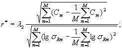 т = 1, ..., M; l = 1, ..., L. 6.2.1.2 На основе полученных значений выборочных дисперсий S2ml ..., S2mL в т-м ОО проверяют гипотезу о равенстве генеральных дисперсий1), используя критерий Кохрена. 1) Дисперсии результатов единичного анализа, полученные в различных лабораториях, имеют различные значения. Предполагают, что для аттестованной методики анализа такие различия между лабораториями невелики и что допустимо установить одно общее (усредненное) значение дисперсии для всех лабораторий, применяющих данную методику. Значение критерия Кохрена Gm (max) рассчитывают по формуле